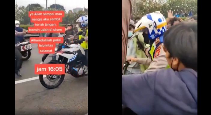Jakarta – Seorang Polisi diketahui diselamatkan Mahasiswa peserta Aksi 11 April 2022 di