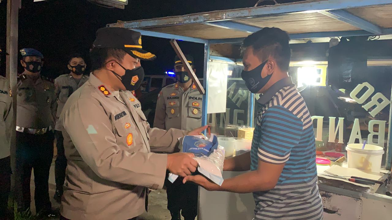 Polres Ketapang Bagikan 145 Paket Sembako Ke Pedagang Kecil